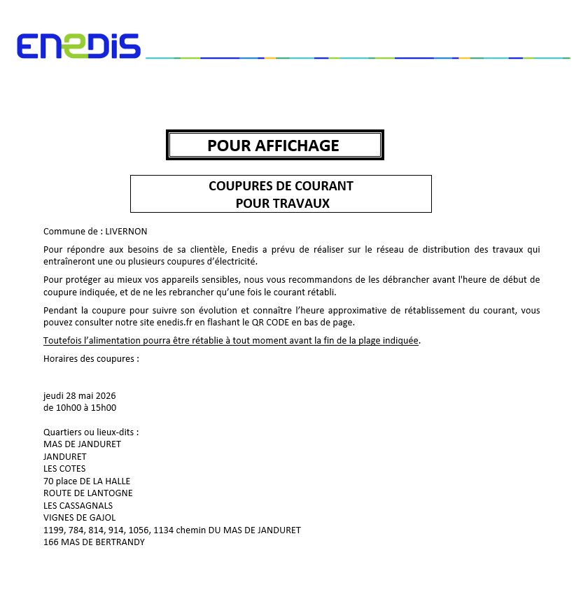 COUPURES DE COURANT POUR TRAVAUX
