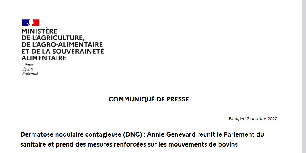 DERMATOSE NODULAIRE CONTAGIEUSE (DNC) - COMMUNIQUÉ DE PRESSE