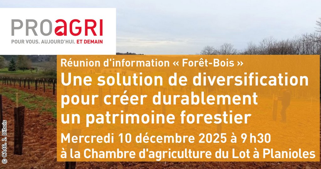 Réunion d'information "Forêt-bois" : Une solution de diversification pour créer durablement un patrimoine forestier. Mercredi 10/12/2025 à 9h30 à la chambre d'agriculture du Lot à Planioles